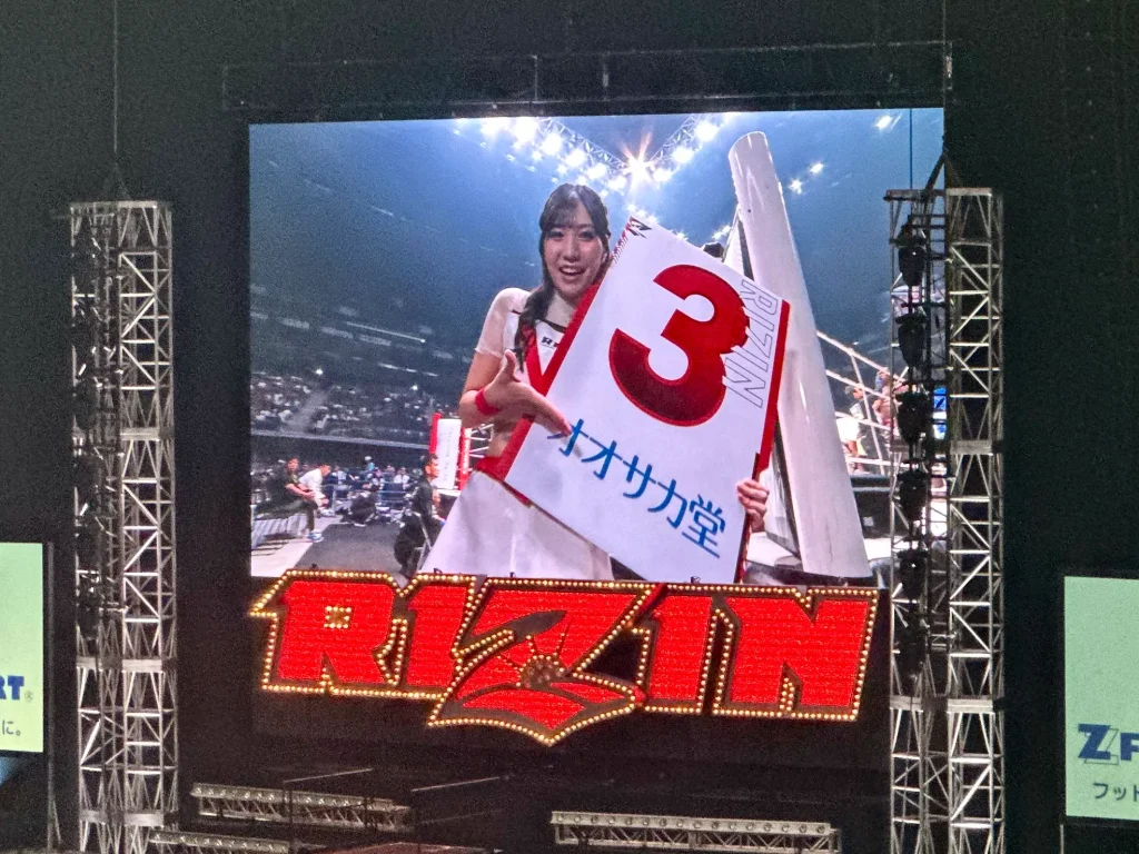 また、試合中にはRIZINガールの皆様が掲げるラウンドボードにもオオサカ堂のロゴが登場し、多くの皆様にご注目いただく機会となりました。